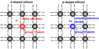 - When a voltage is applied across the silicon-boron mixture, a hole moves toward the negative voltage end while a neighboring electron fills in its place.